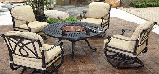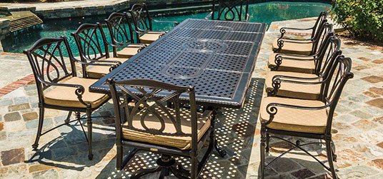 The Grand Terrace collection is expertly cast and exquisitely detailed to make your outdoor space come alive with luxury. make A statement of grace and poise in your backyard with its classic design and seating that is idea for all day lounging. an outdoor space furnished with pieces from the Grand Terrace collection is certain to be admired for years.