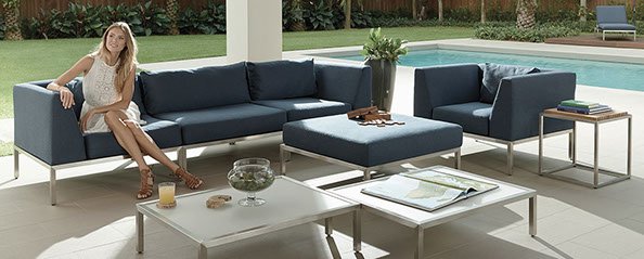 The latest Outdoor Lounge product line by London designer Mark Gabbertas combines tactile and visual richness of fine upholstery with linear stainless steel frames with strikingly beautiful results.